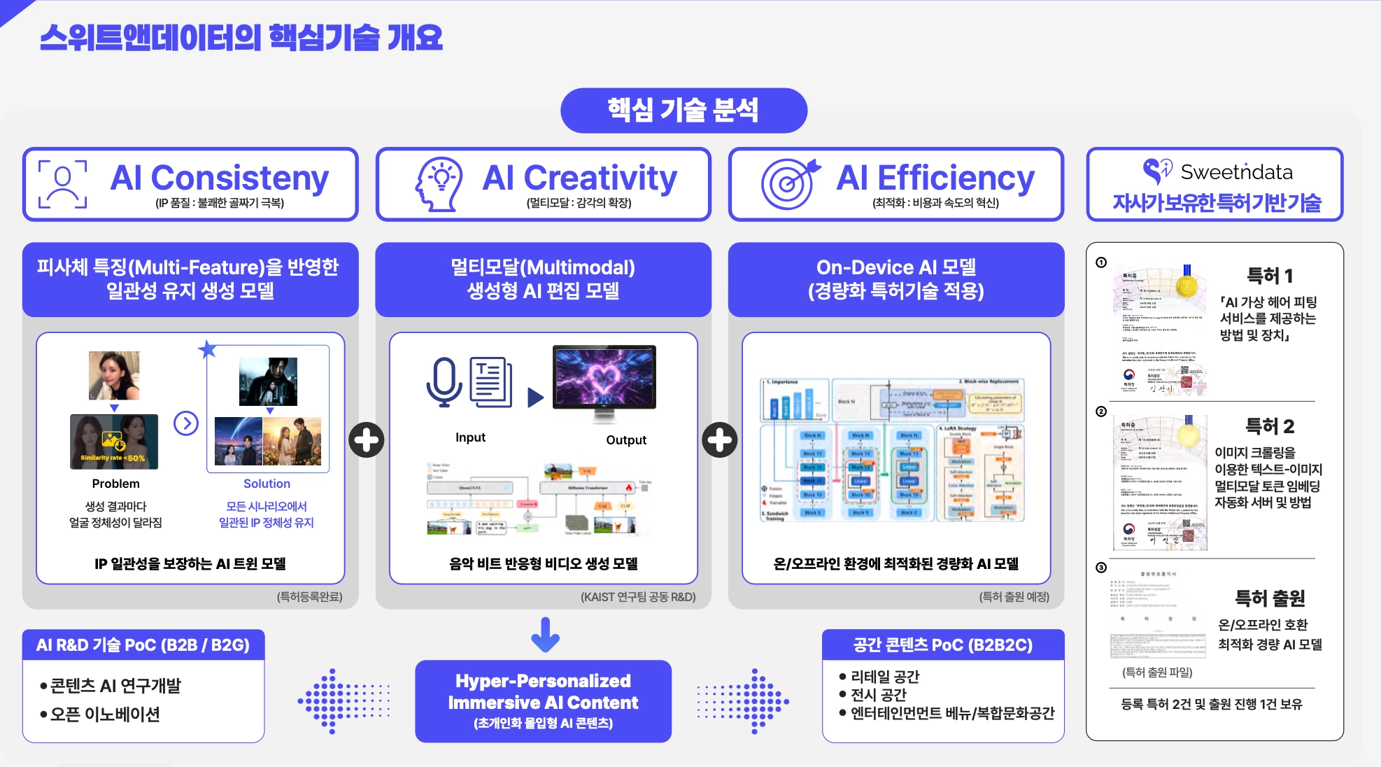 스위트앤데이터는 기술을 단순히 소비하는 데 그치지 않고, 수익화 가능한 IP 자산으로 전환합니다.